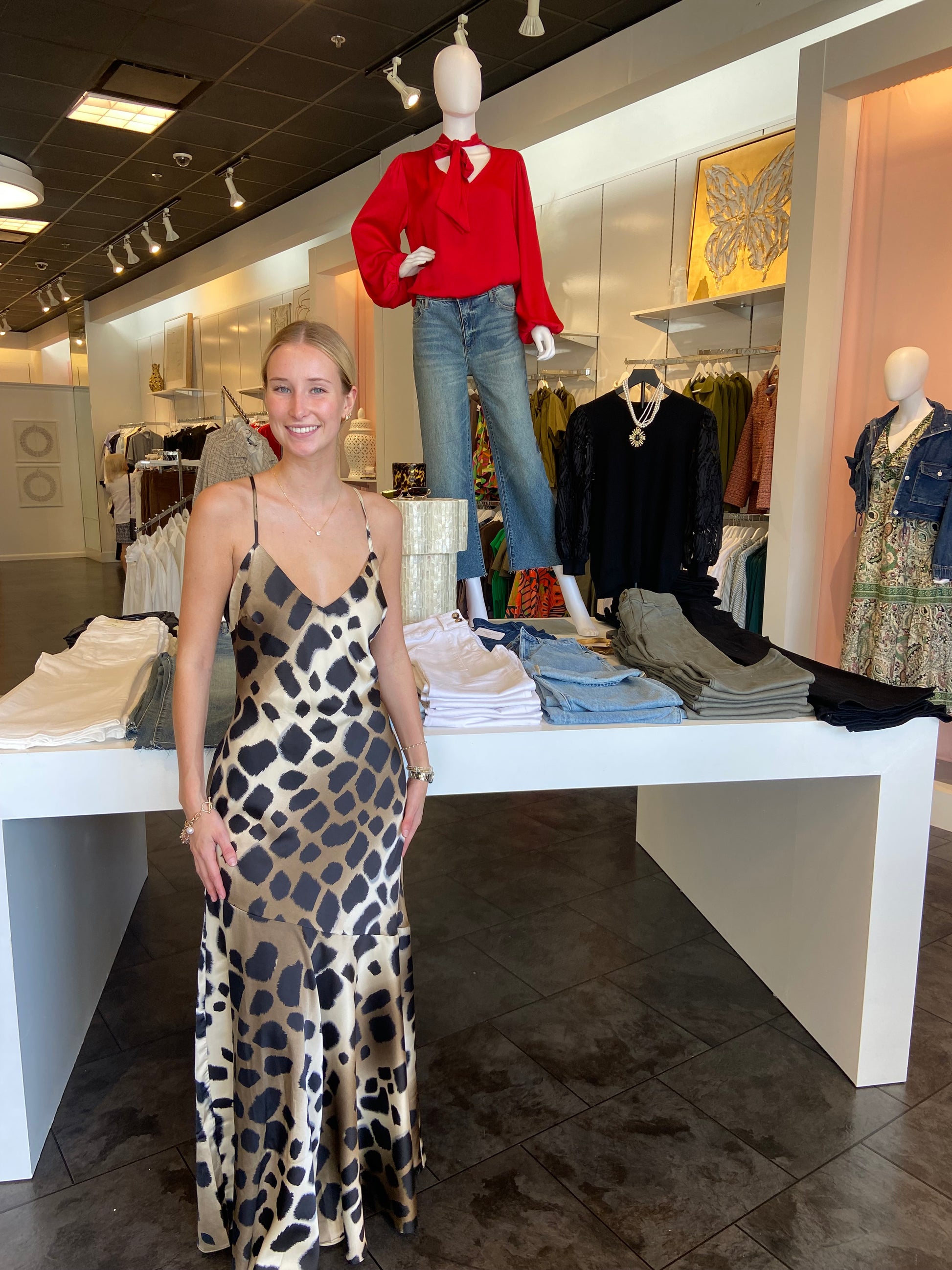 Large Animal print satin maxi dress