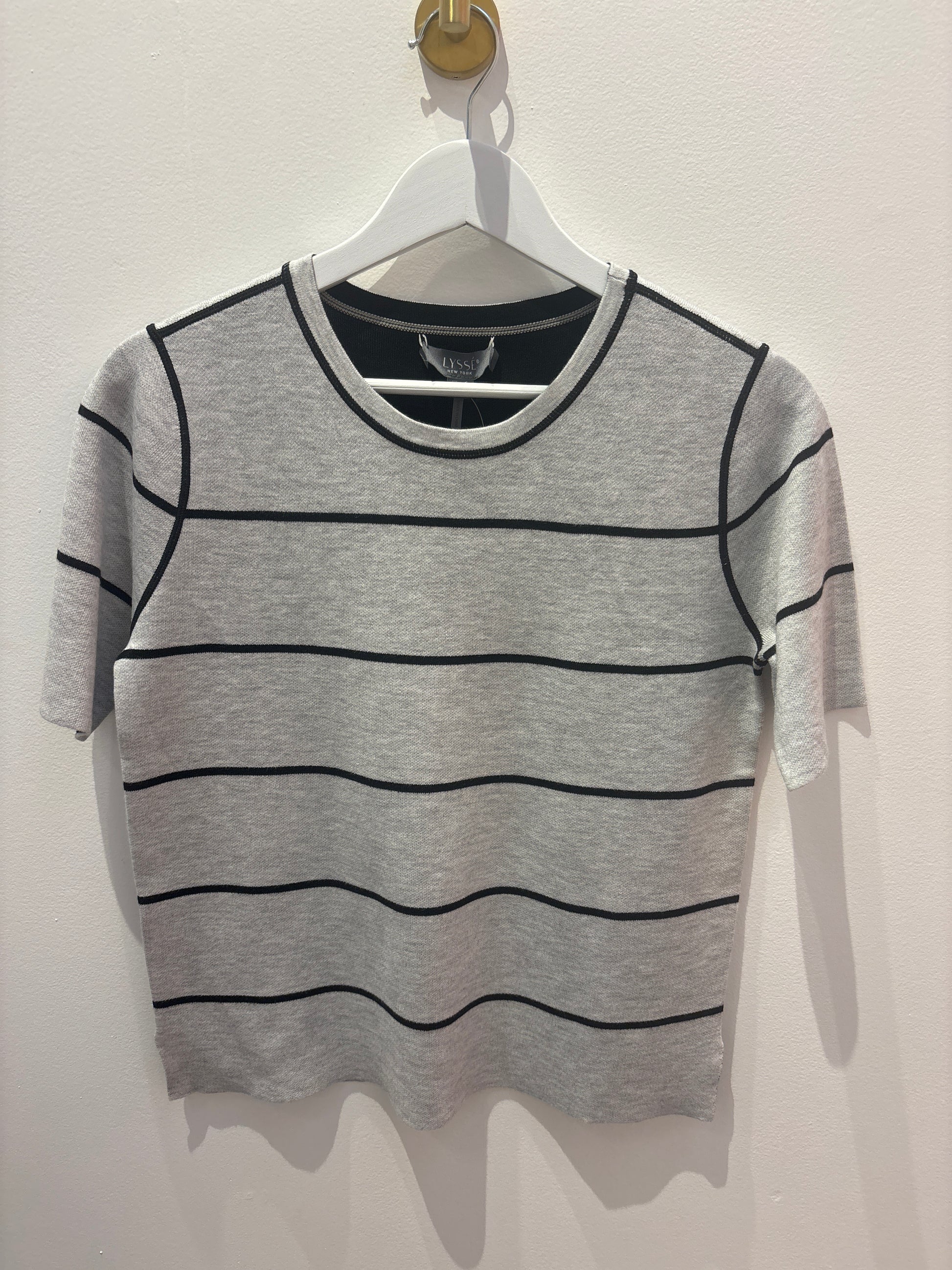 Grey and Black stripe knit short sleeve REVERSIBLE top