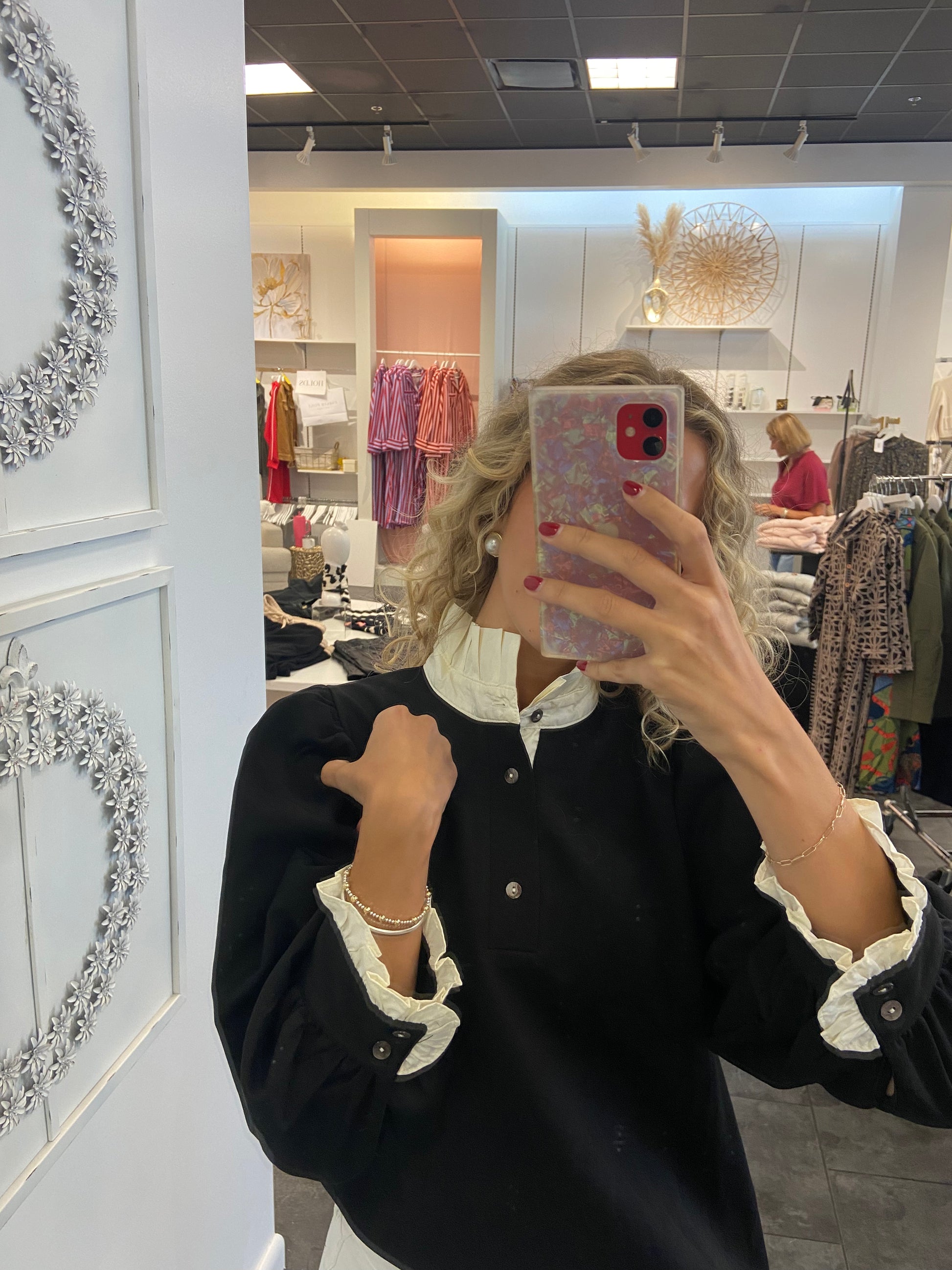 Black pullover with white pop collar and sleeve 3/4 sleeve